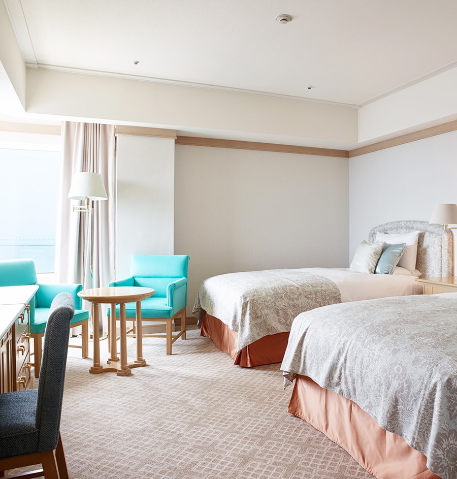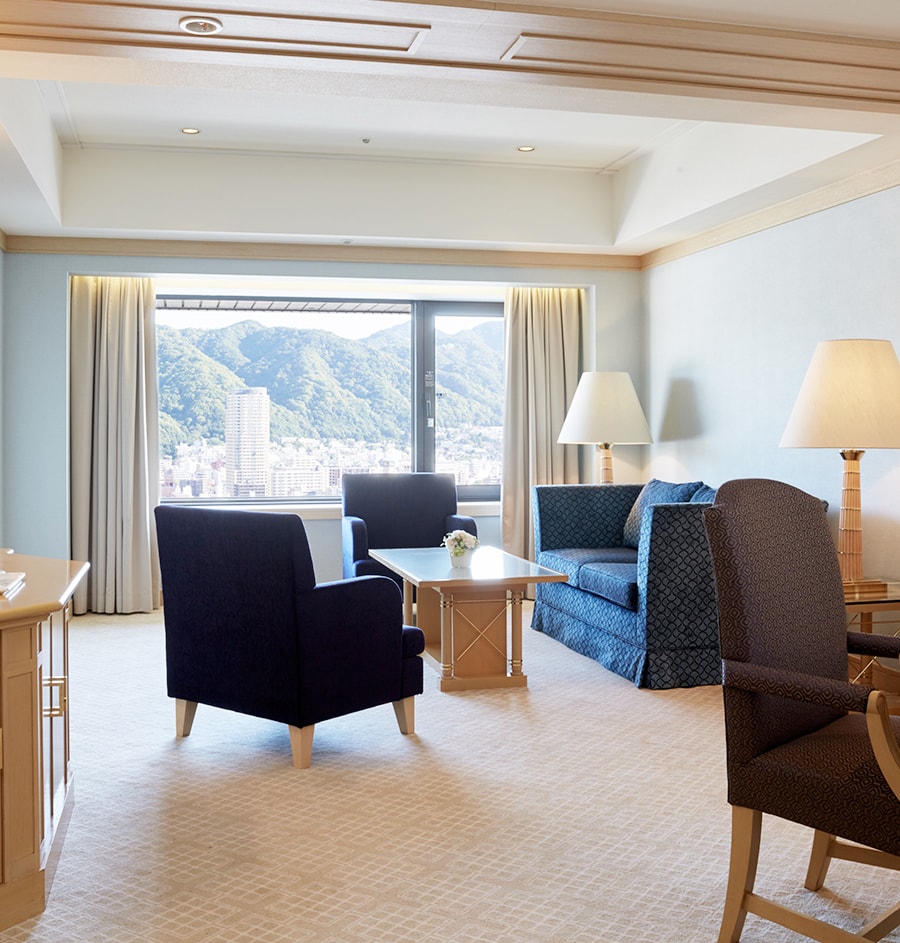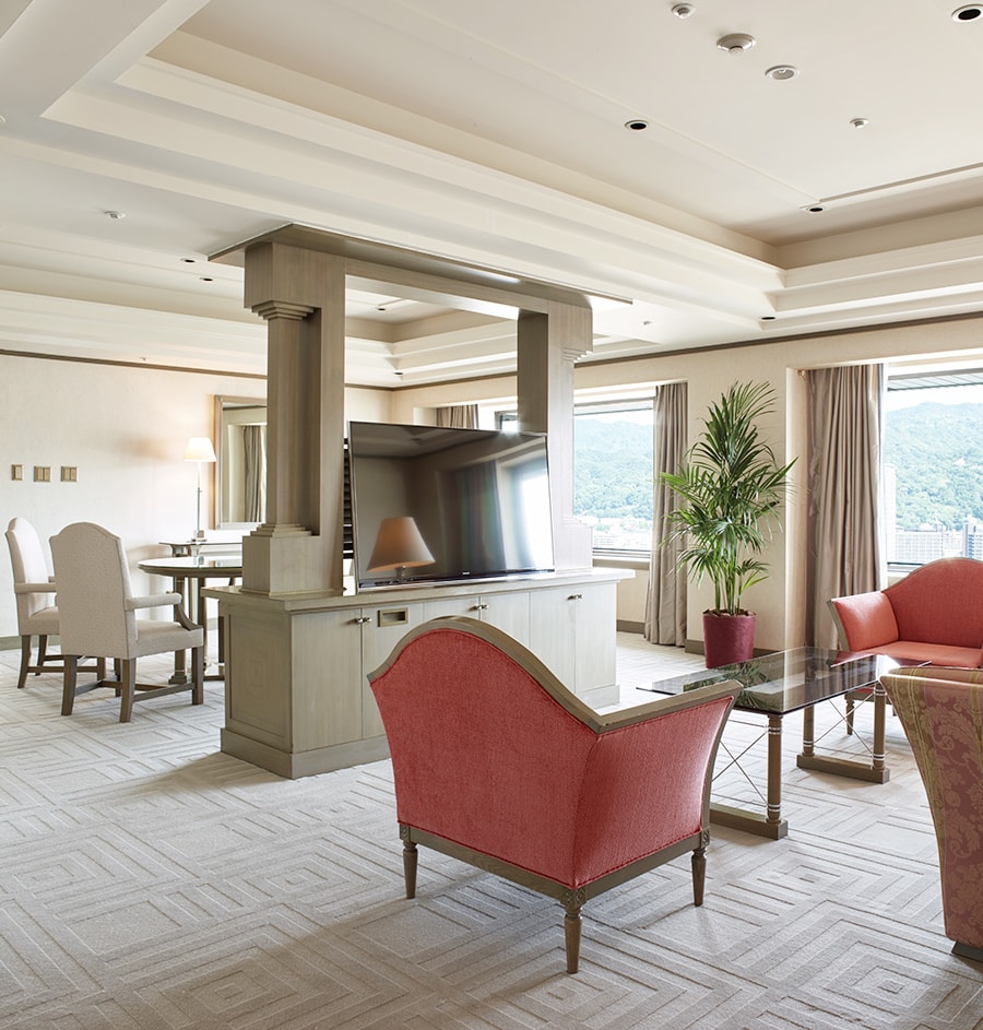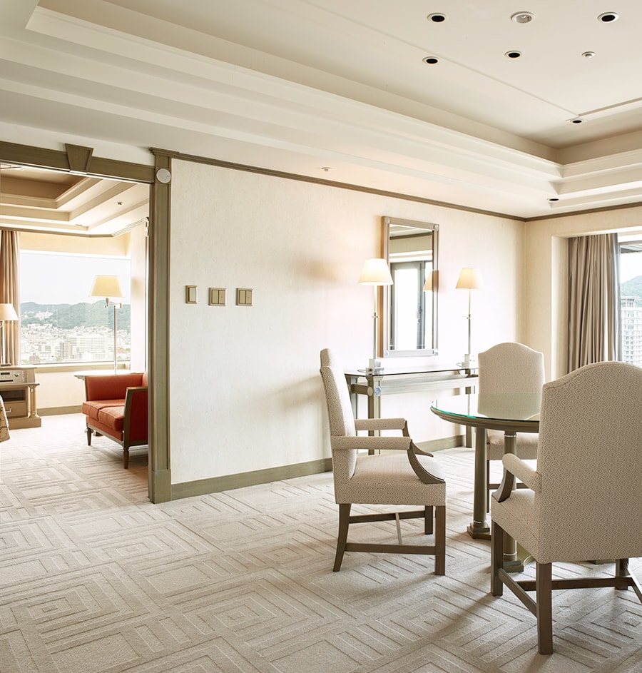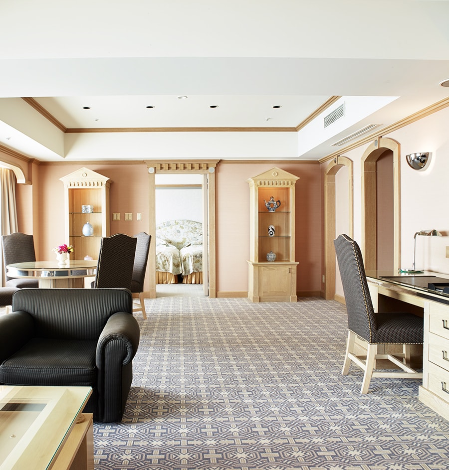 リビングルームとベッドルームを配するスイートルームは、くつろぎのひとときと上質な眠りをお届けいたします。