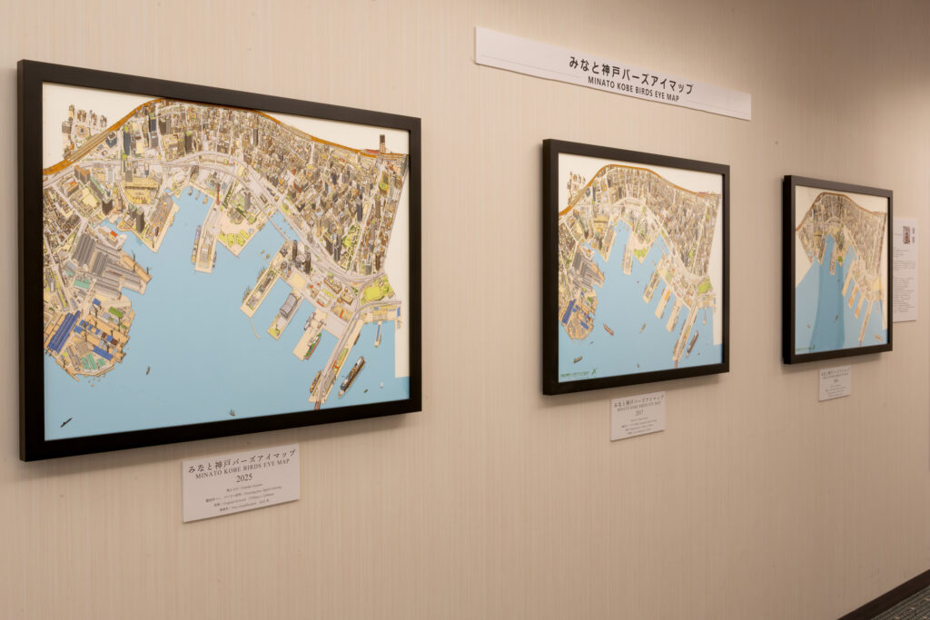 また、神戸の復興の街並みを描き続けている鳥観図絵師・青山大介さんの作品や、