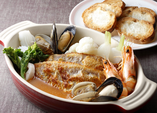 ●軽く煮込んだ魚介類のブイヤベース風 バルーン仕立て