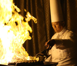 おふたりの想い出に残る一品を料理長が再現し、メニューに盛り込みます。または、ダイナミックな音と香りで会場内を満たすフランベサービスをお愉しみいただけます。