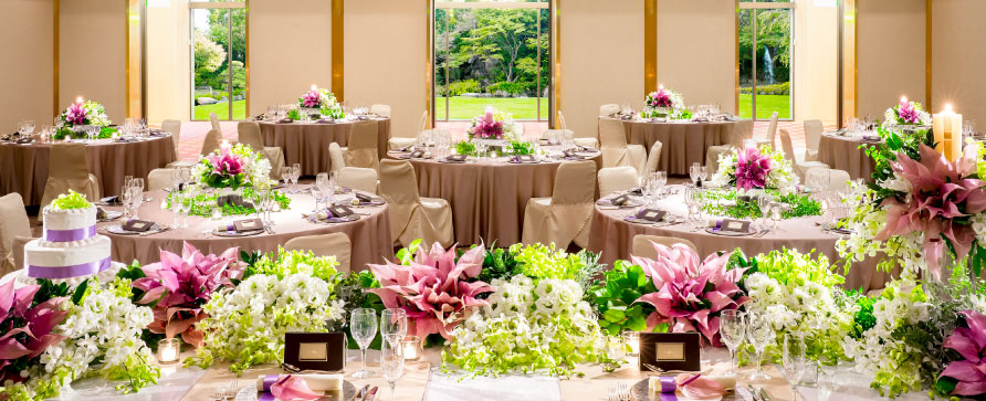 • 装花(メインテーブル、ウエディングケーキテーブル、ブライダルキャンドルテーブル、ゲストテーブル)