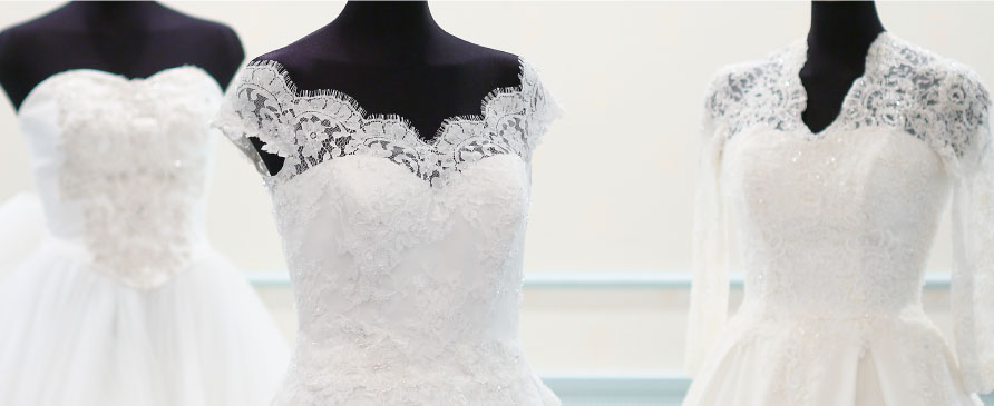 花嫁を輝かせる上質なウエディングドレスコレクション、お色直しのカラードレス、白無垢や引き振袖など和装も取り揃えております。